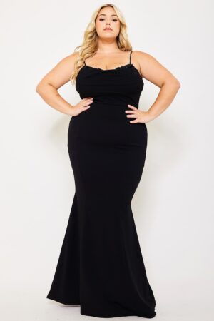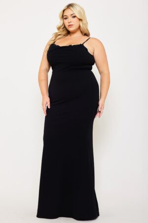 Este vestido máximo de talla grande combina elegancia y comodidad. Cuenta con un top plisado que resalta el busto, adornado con flores en la parte superior. Tiene tirantes de hombro ajustables para un ajuste perfecto y un cierre trasero con cremallera que facilita su uso. El diseño ofrece un estiramiento moderado, adaptándose con suavidad a la figura. Ideal para ocasiones especiales, el vestido largo y ajustado en la parte inferior realza la silueta femenina y proporciona un look sofisticado y favorecedor para quienes buscan estilo y comodidad en un solo atuendo.