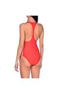 Traje de baño de natación de la marca arena, hecho de tela resistente al cloro del agua y de secado rápido, diseño con vivos de la marca a un lado y tirantes que se juntan en la parte del medio de la espalda.